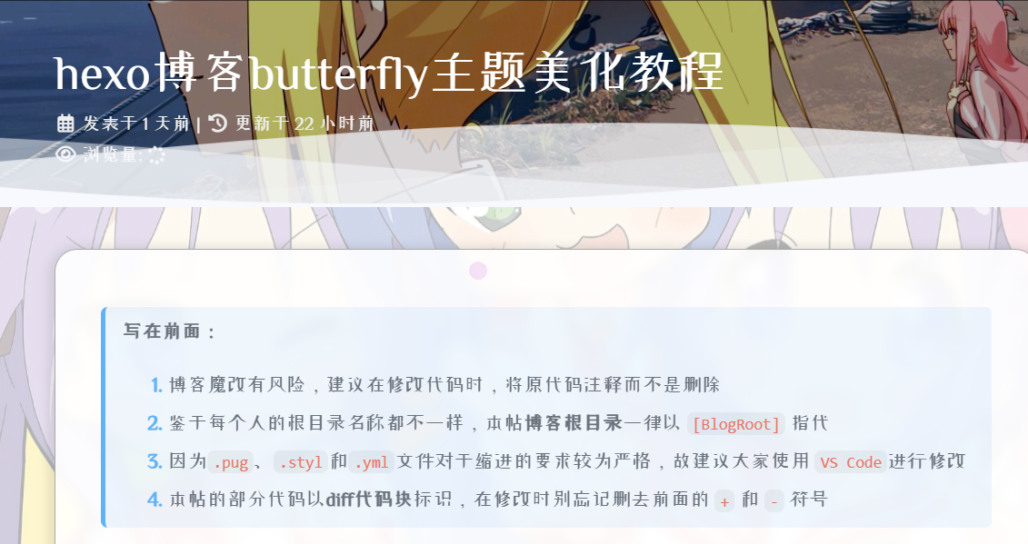 - 博客魔改有风险,建议在修改代码时,将原代码注释而不是删除